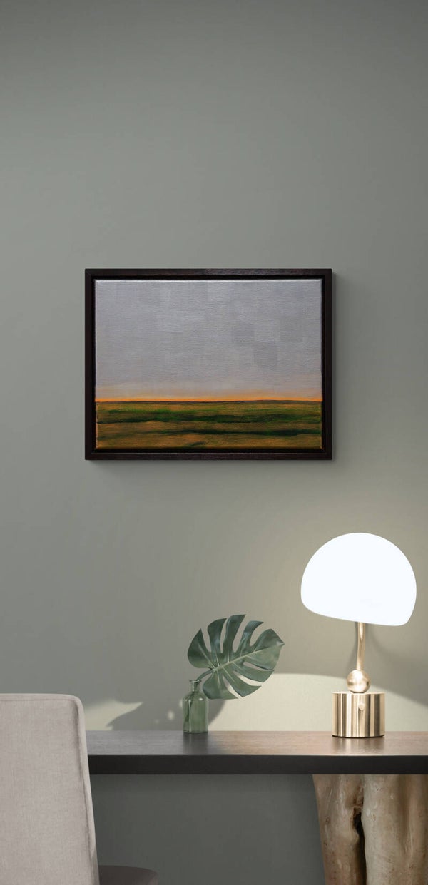 Ingelijst in een donkerbruin gelakte houten lijst 33x43cm